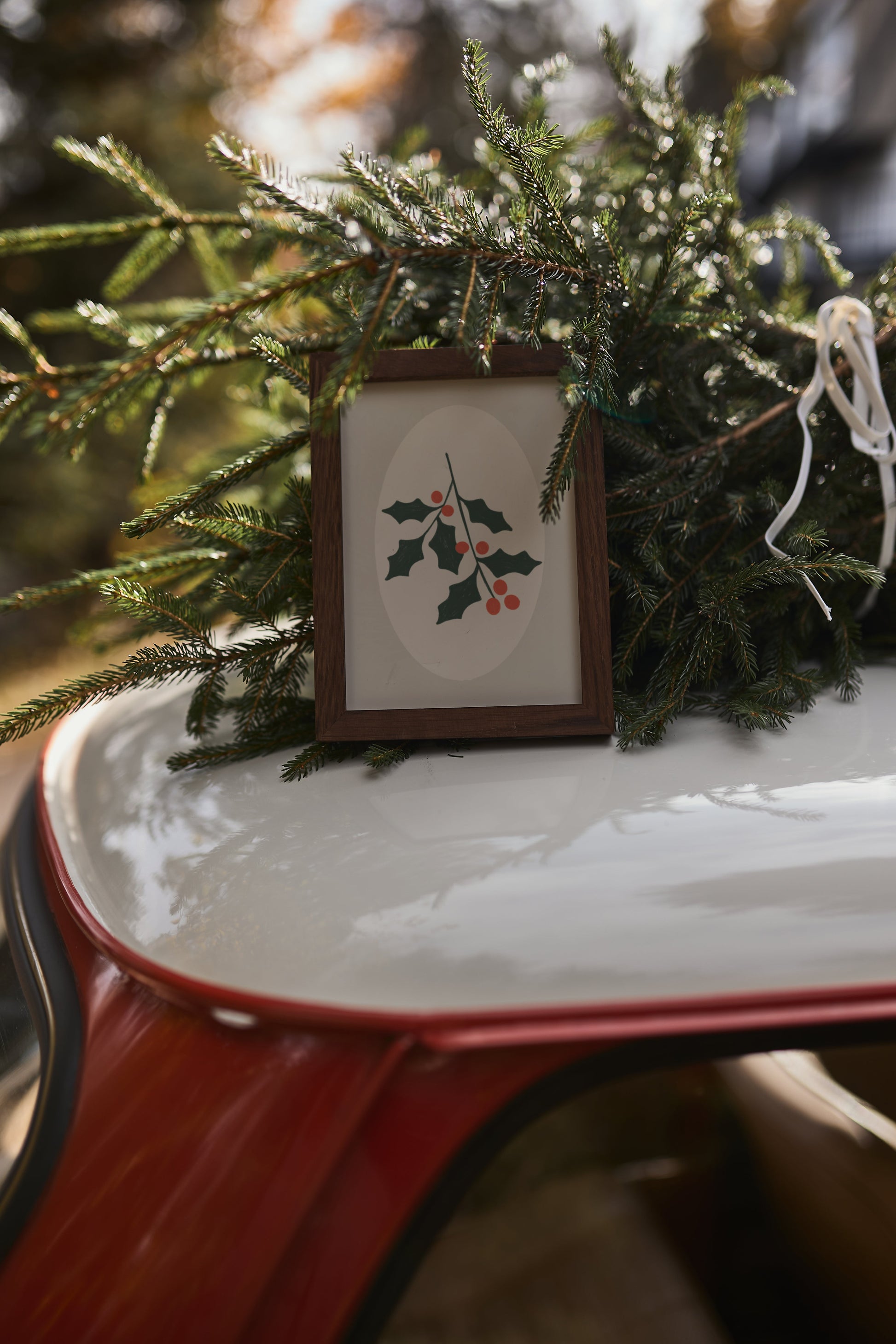 This print would be ideal for display during the winter months, adding a subtle festive touch to a living room, dining area, or hallway. Its understated beauty and seasonal relevance make it versatile and easy to incorporate into different decor styles.